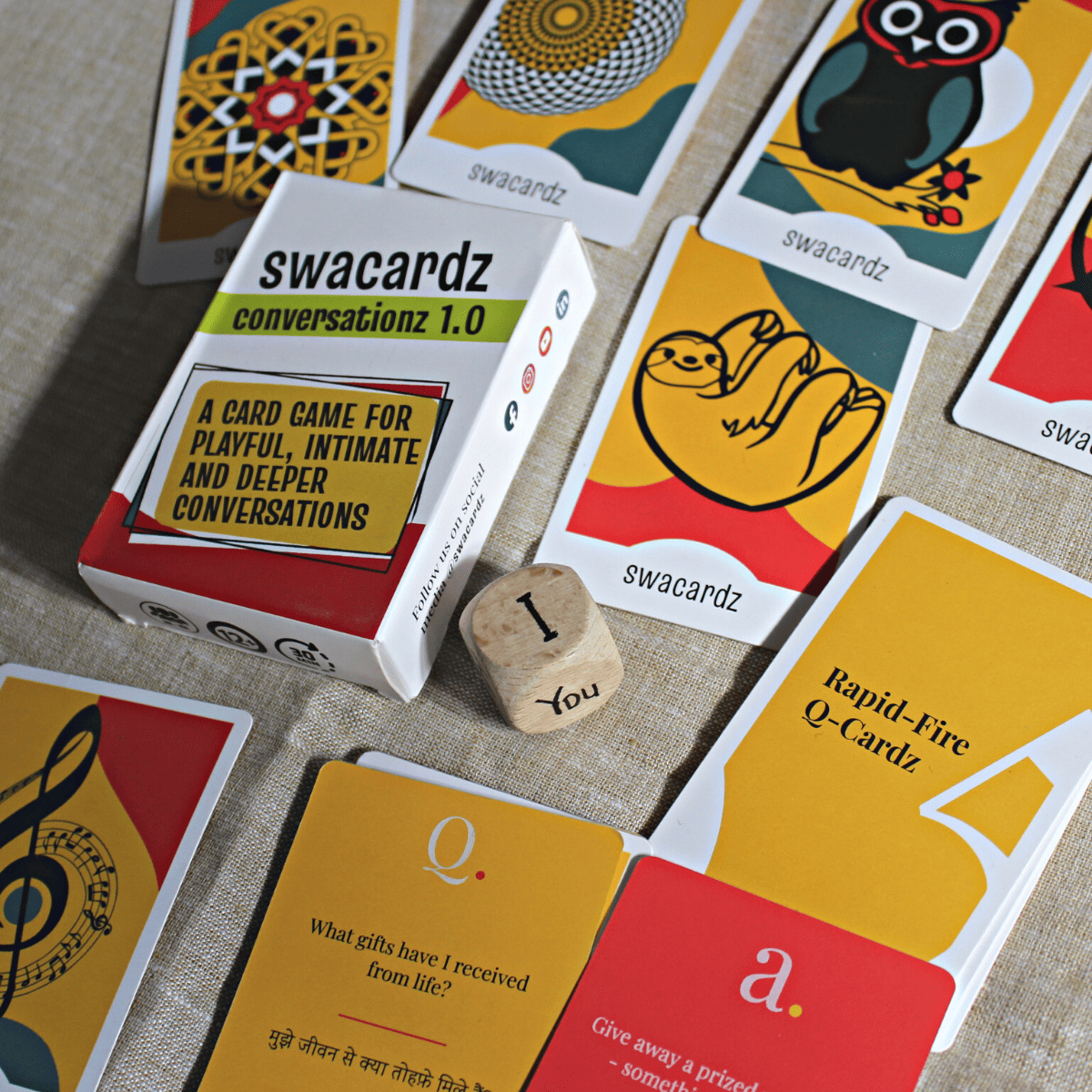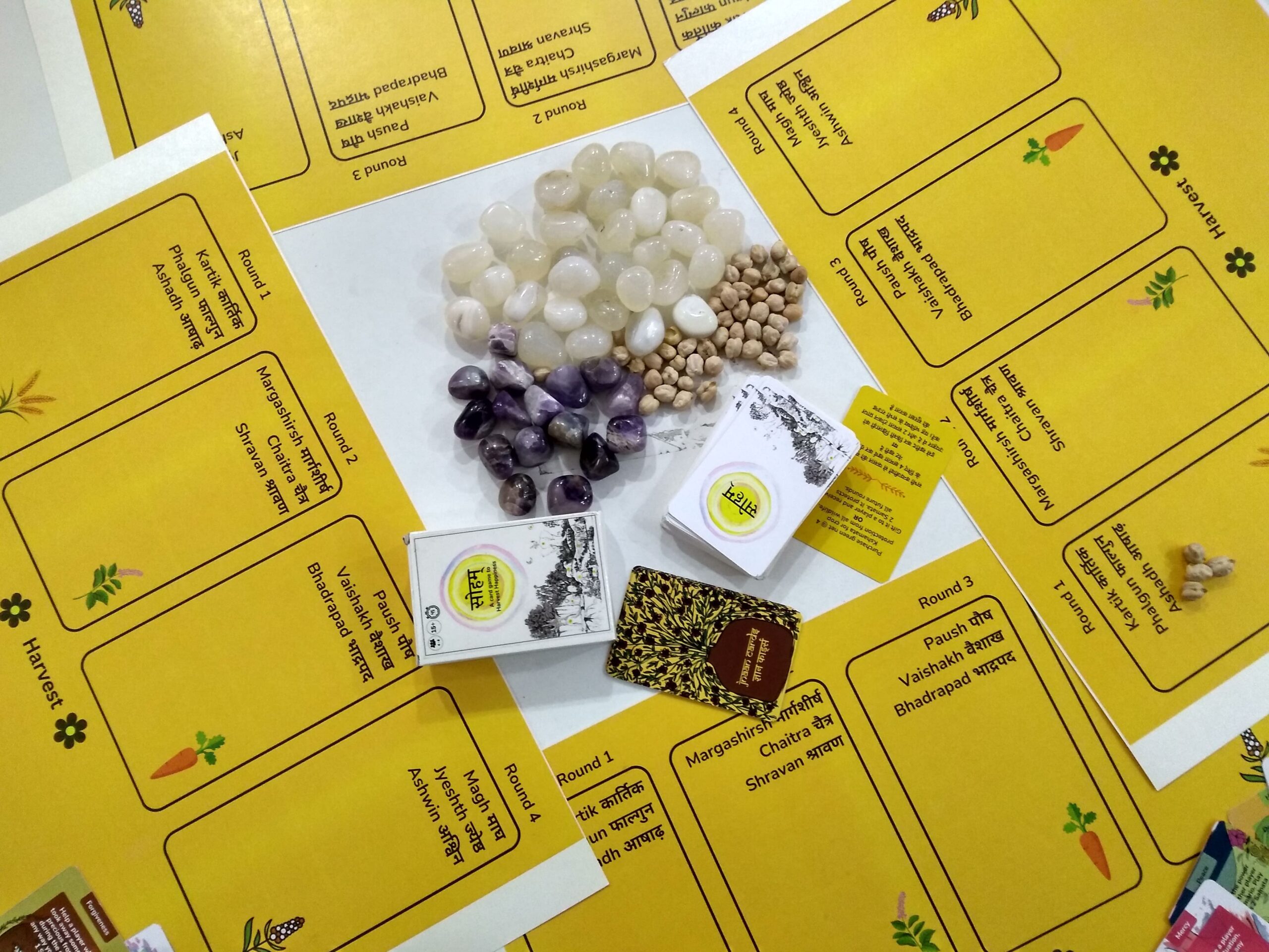 Sohum is a values-based card game that invites players to Seed Kindness & Harvest Happiness. Rooted in the meaning of Sohum that means, “You are, therefore I am”, the game places players in charge of neighbouring farmlands where they make choices, manage resources, and balance material and ethical outcomes. Players spend and earn Kshamata tokens (financial power) while cultivating Samata tokens (equanimity), learning to navigate trade-offs between profit and purpose. Inspired by the virtues of Jain dharma, Sohum rewards decisions made for the maximum benefit of all, creating a playful yet profound experience that builds empathy, responsibility, and conscious leadership.