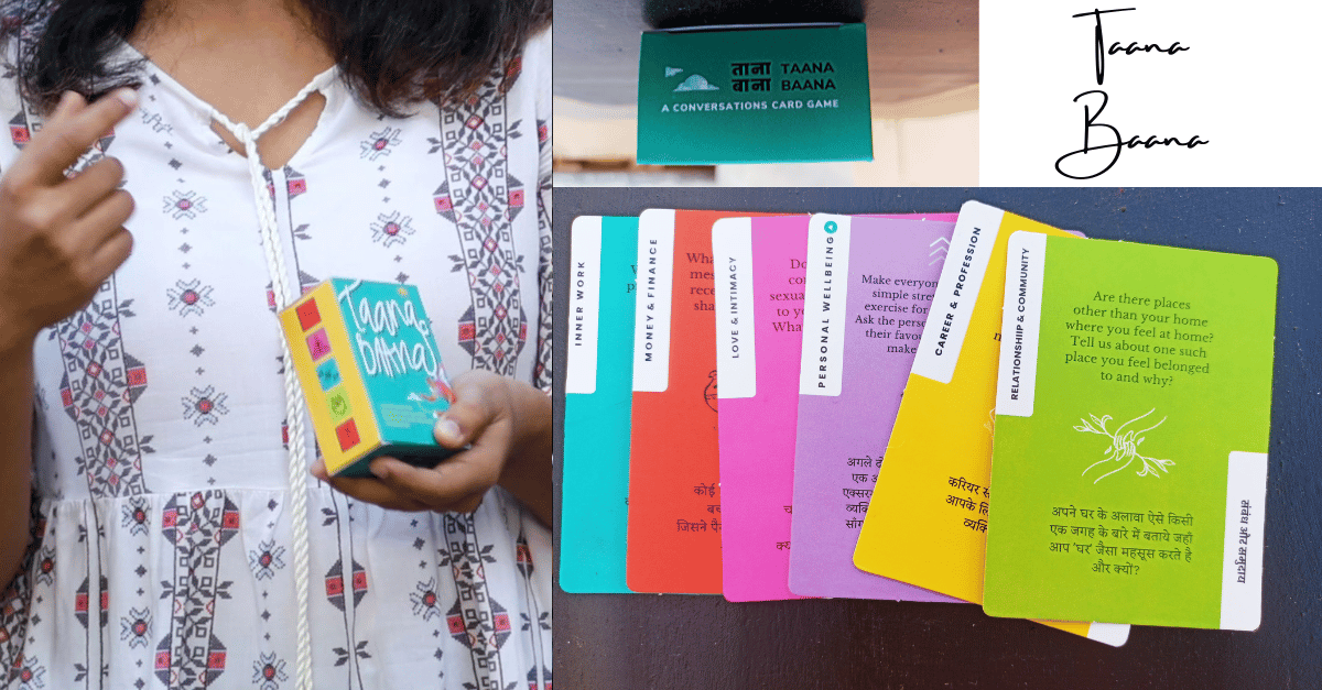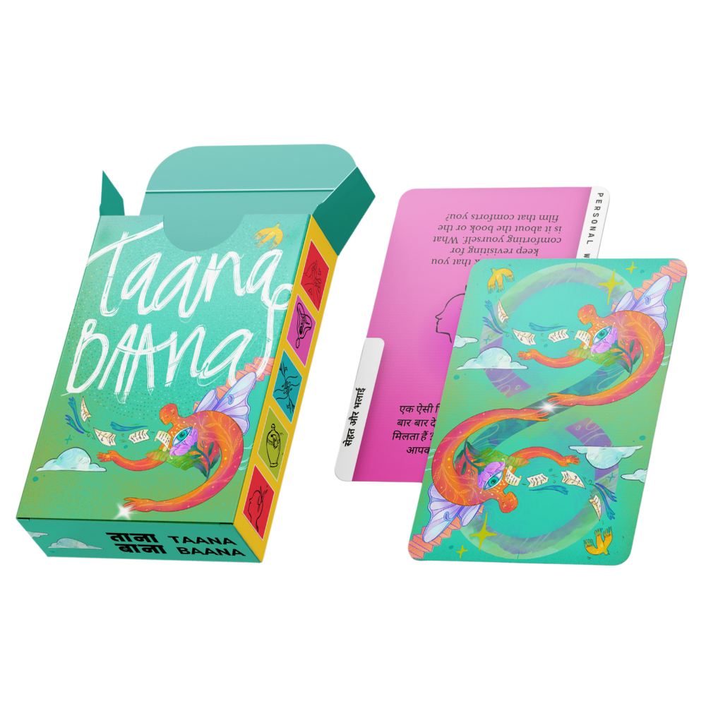 Taana Baana is a set of 72 cards with powerful questions and acts to spark meaningful conversations and connections about 6 key dimensions of life: