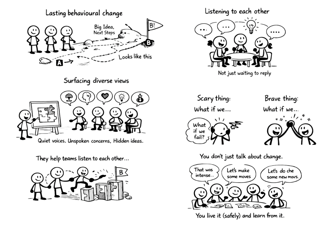 Because most people don’t change their thinking or behaviours through presentations. They change through sustained experience.
